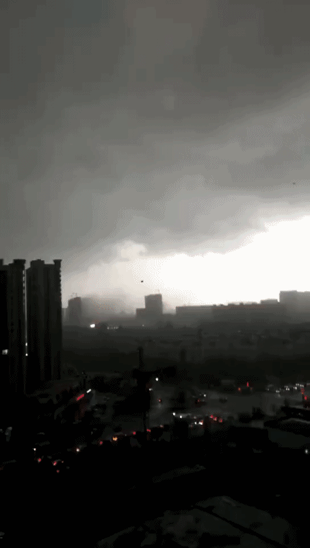 当时,户外漆黑一片,风雨大作。苏集街头的一处十字路口附近,一棵粗大树木遭大风袭击,树干扭曲倒地,压断了道路对面的高压电线。