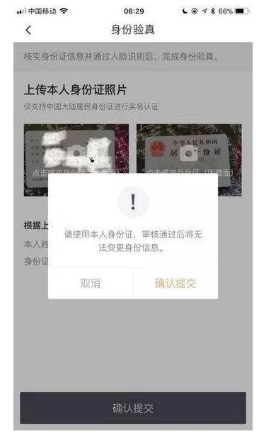 在身份验真中,记者注意到滴滴顺风车要求乘客和车主均需上传身份证照片。而上传只能使用“拍照”功能,而没有“从图库中选择”功能,也就是说上传的身份证只能是现场拍摄的,而不能使用图片和此前拍摄的照片。上传身份证后,还需要人脸验真,均完成后才能完成该项任务。